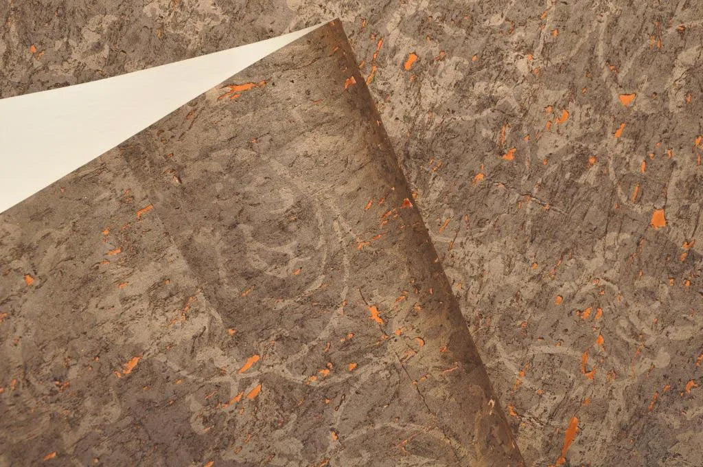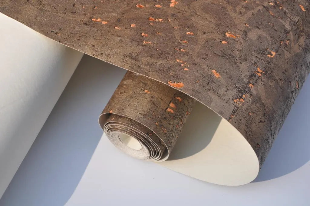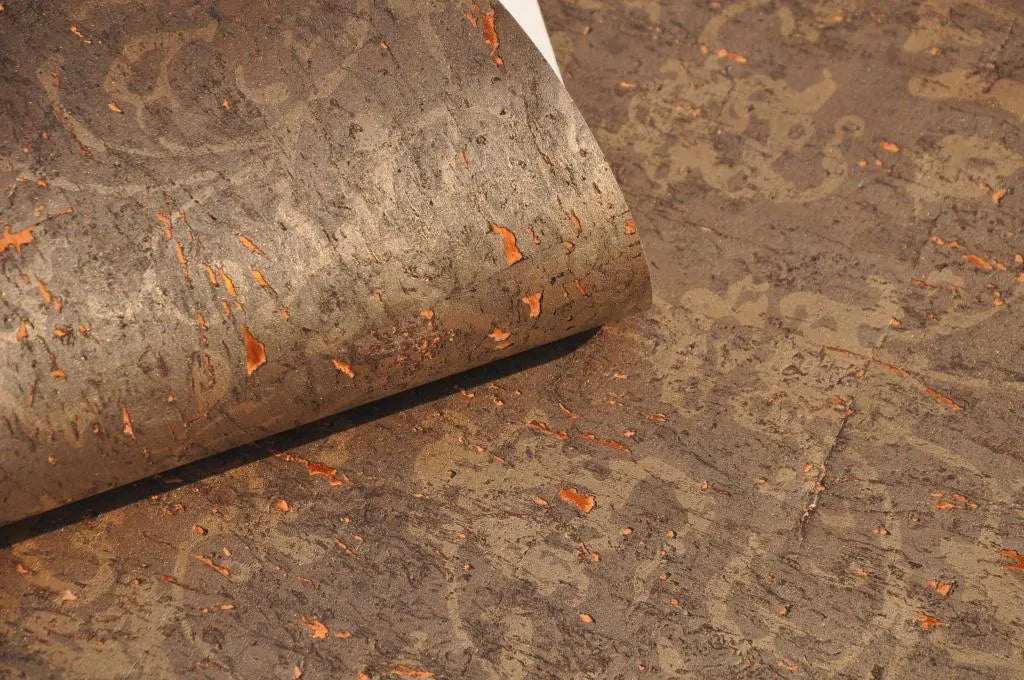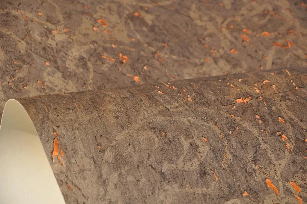 The Brunel cork wallcovering draws on the natural richness of cork with a deep, earthy brown tone layered in subtle copper shimmer. Its textured surface mimics the organic fragments of bark, offering warmth and dimension with an industrial edge. Ideal for dramatic dining spaces, moody bedrooms or refined interiors.