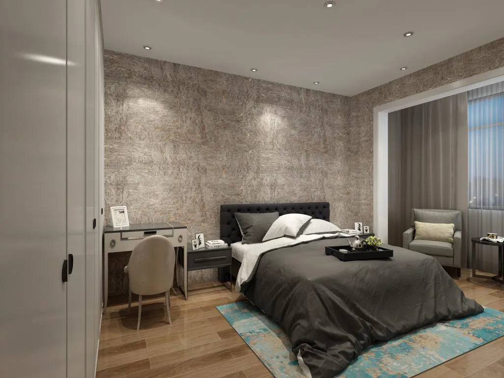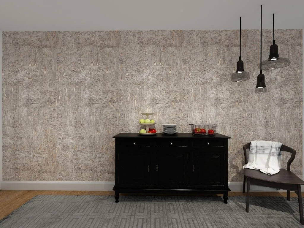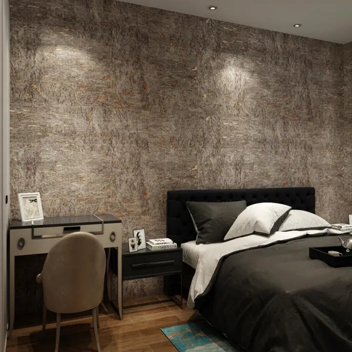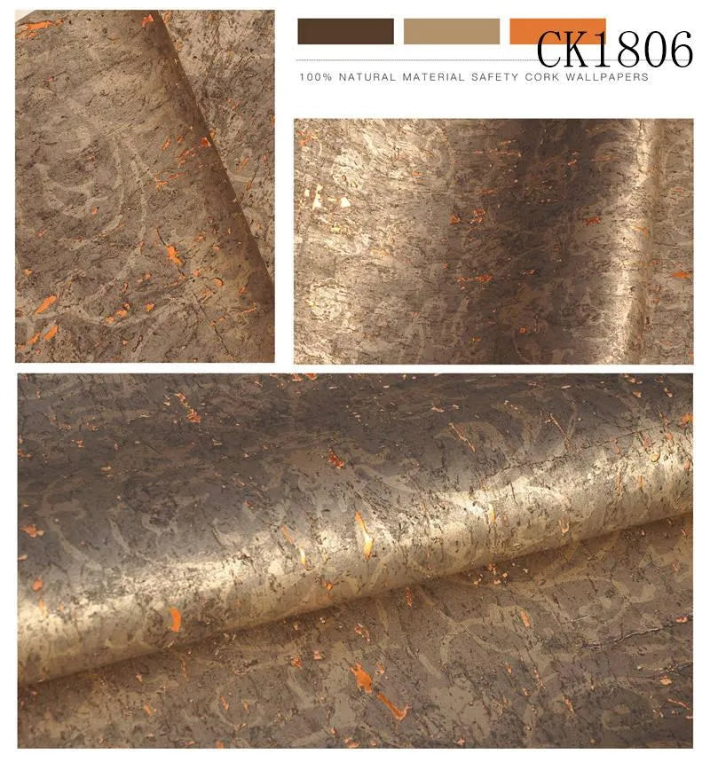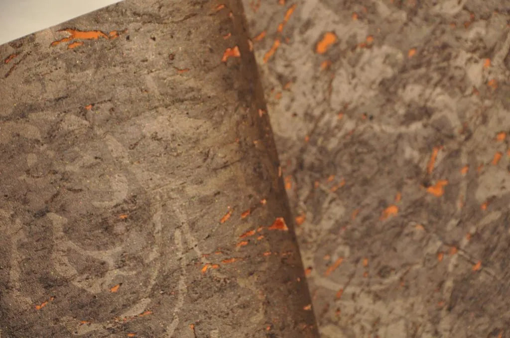 The Brunel cork wallcovering draws on the natural richness of cork with a deep, earthy brown tone layered in subtle copper shimmer. Its textured surface mimics the organic fragments of bark, offering warmth and dimension with an industrial edge. Ideal for dramatic dining spaces, moody bedrooms or refined interiors.