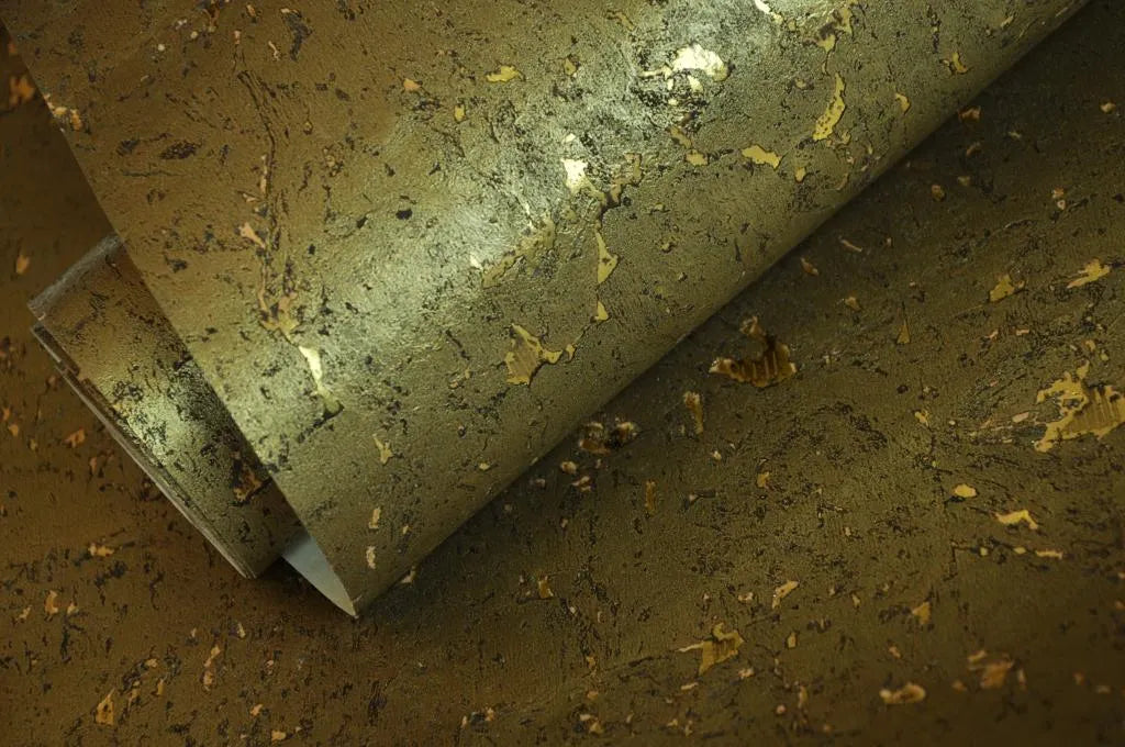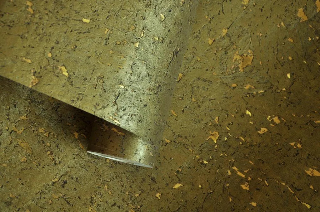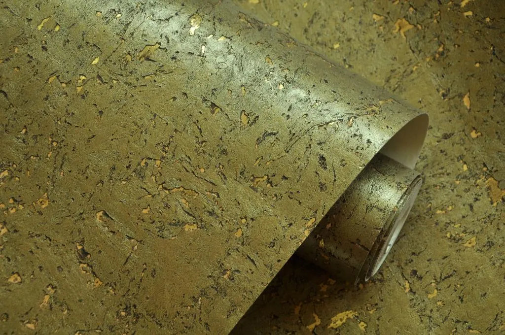 The Cortex cork wallpaper brings textured cork surfaces to the wall, layered with soft metallic warmth that gently catches the light. Its organic pattern creates depth and subtle movement, balancing earthy character with a refined glow for spaces that feel both grounded and elevated.