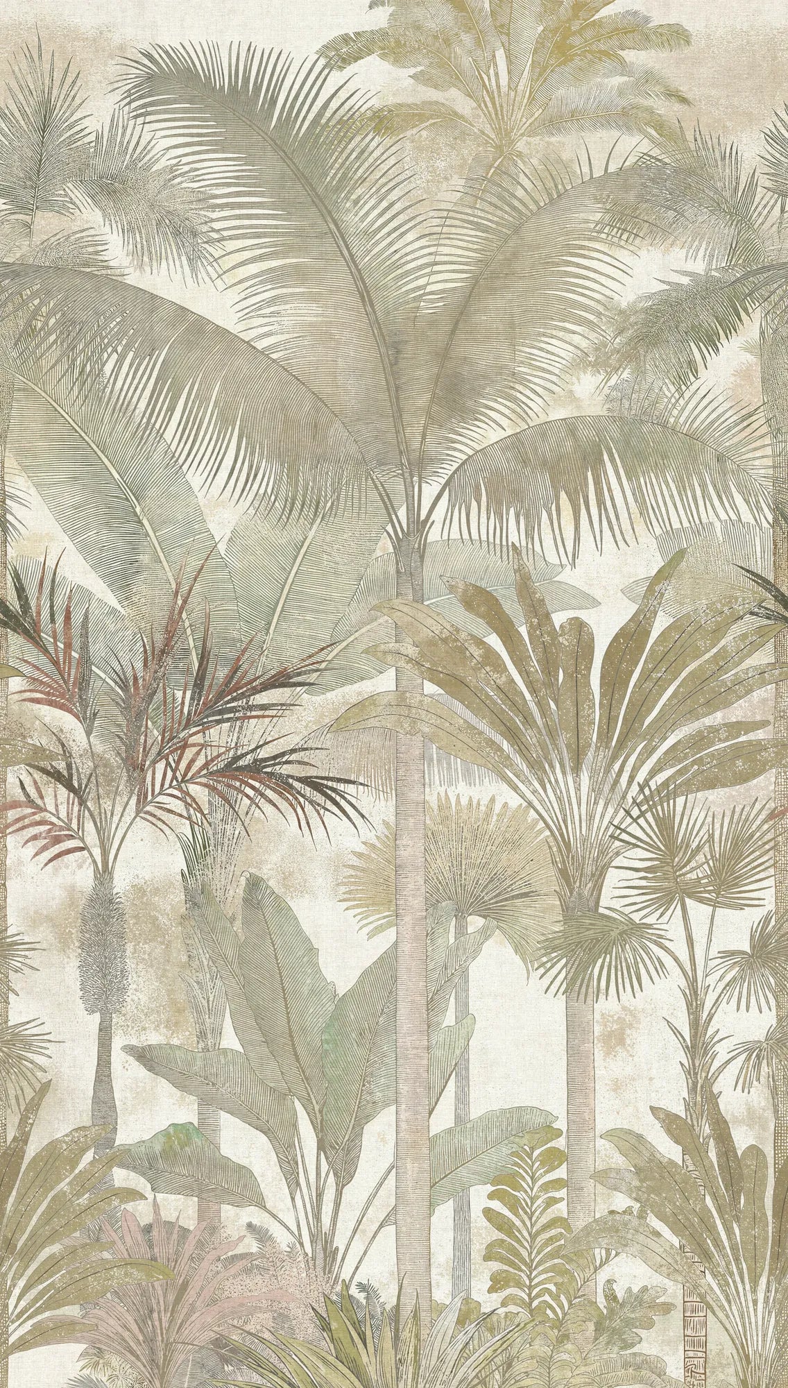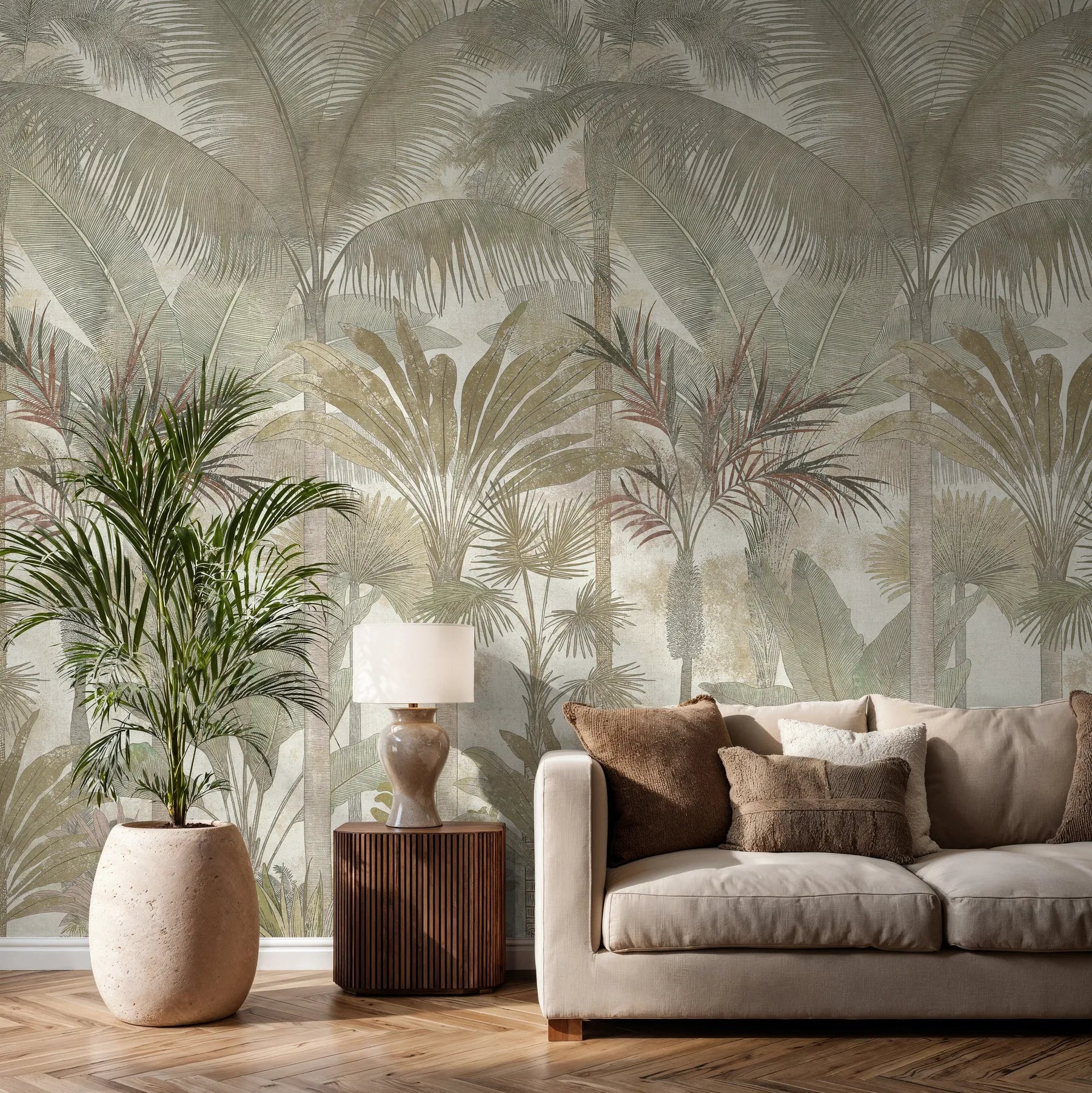 The Faded Grove mural brings in softly weathered botanicals and warm, earthy tones. Its layered finish and muted greens feel sun-worn and lived-in - perfect for interiors that lean warm, textural, and relaxed.