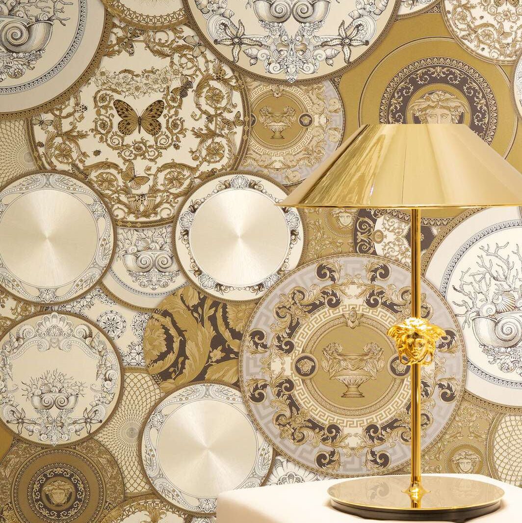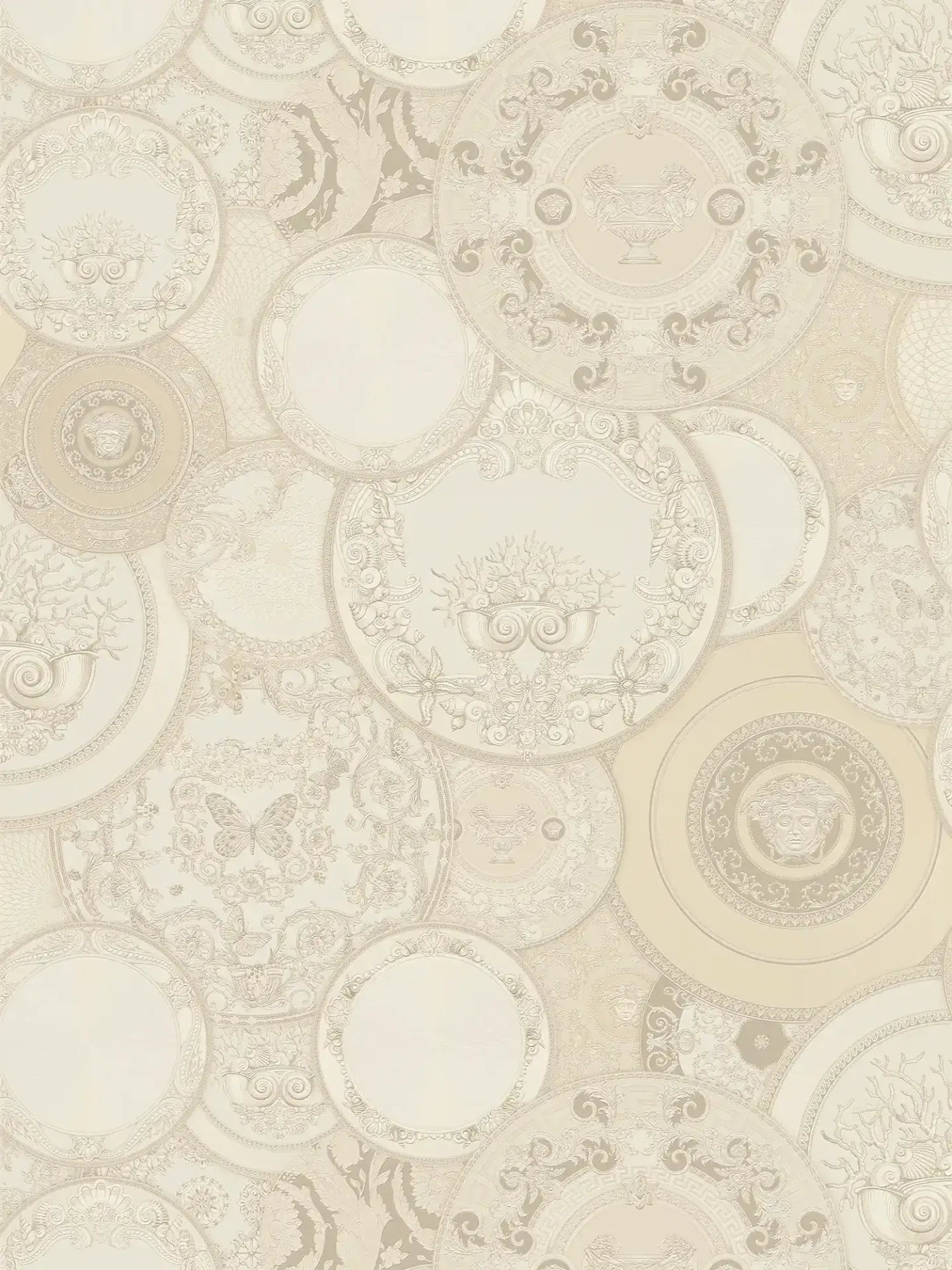 This Art de la Table wallpaper is dedicated to haute couture tableware – but on the wall. Playful motifs made of porcelain, table decorations and classic tableware are staged in generous arrangements, creating a wall picture that conveys sensuality, sophistication and refined style. This unique design transforms dining areas, lounges or hotel lobbies with a culinary and artistic accent, bringing the elegance of fine dining to your walls. The intricate pattern features ornate plate designs arranged in a captivating geometric composition, celebrating the artistry of traditional tableware through contemporary wallpaper design. Perfect for creating conversation-worthy feature walls in dining rooms, restaurants, or any space where culinary culture meets interior design, this wallpaper adds refined, eclectic charm that's both whimsical and sophisticated.