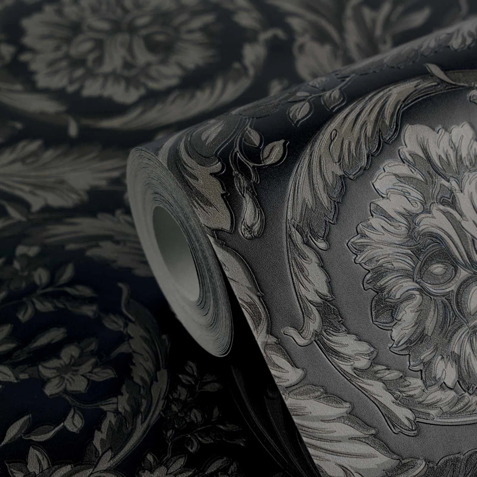 Barocco wallpaper represents the expressive essence of the collection: voluminous ornamentation, sculptural flourishes, dramatic light-dark contrasts. The wallpapers in this series are ambitious stage sets – bold, opulent, uncompromising. Combined with metallic accents, rich colours and elegant contrasts, they create a luxurious effect that transforms rooms into stages.
