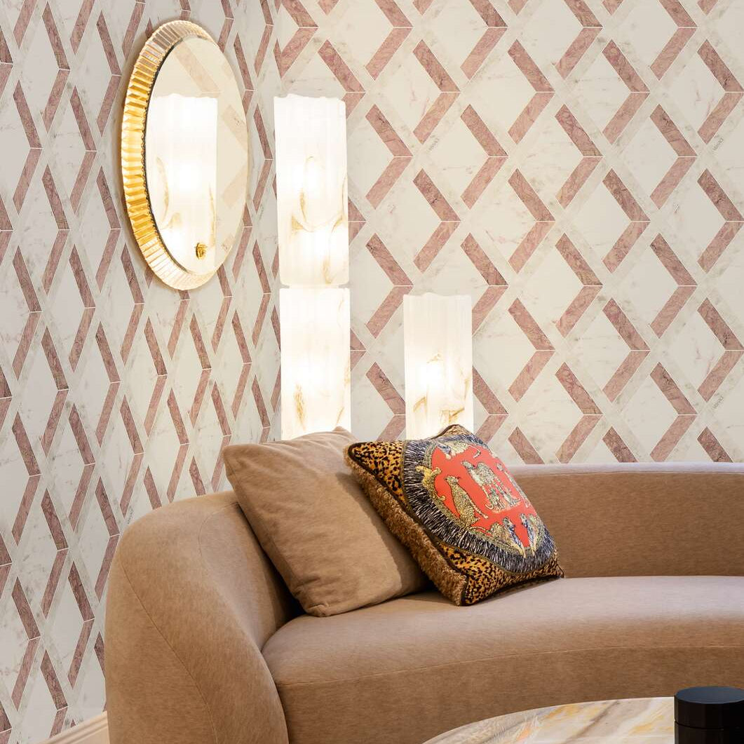 Tarsia wallpaper draws inspiration from the art of decorative mosaics and the ancient technique of marquetry. Geometric forms interlock across the surface, creating a rhythmic composition where pattern, colour and texture come together as a cohesive whole. Subtle tonal contrasts add depth and movement, giving the design a crafted, architectural quality. Elegant yet expressive, Tarsia wallpaper brings a sense of artistry and refined structure to interiors that favour statement surfaces with timeless appeal.
