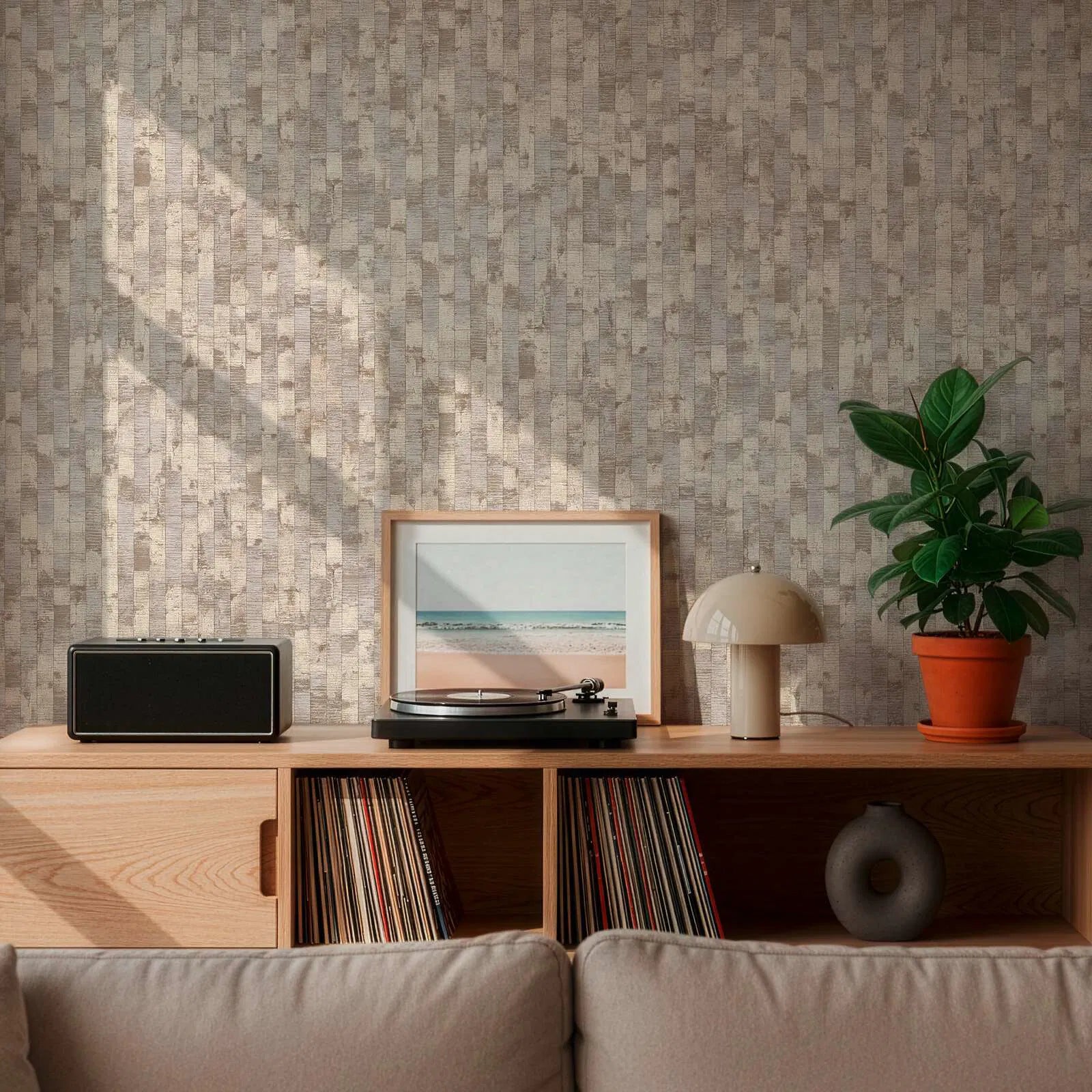Urban Lines wallpaper is a quietly expressive defined by vertical rhythm, subtle texture and softly aged patina. Its linear structure brings order and architectural clarity, while gentle tonal variations and layered detailing introduce depth and a sense of time. Neither stark nor decorative, the design balances modern restraint with understated warmth, creating walls that feel considered, lived-in and enduring. Urban Lines is designed for interiors that value structure with soul — a calm, confident backdrop that shapes a space without overpowering it.